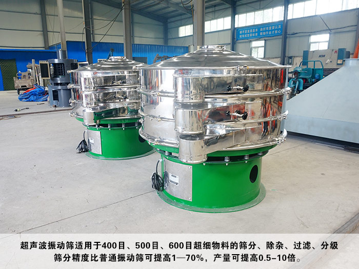 超聲波振動篩適用于400目、500目、600目超細物料的篩分、除雜、過濾、分級;篩分精度比普通振動篩可提高1—70%,產(chǎn)量可提高0.5-10倍。
