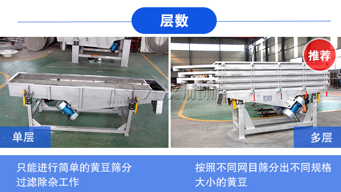 不同層數(shù)的不銹鋼直線篩篩分出來的效果也是不一樣的,單層只能進(jìn)行簡單的黃豆篩分過濾除雜工作,而使用兩層及兩層以上篩網(wǎng)則可以按照不同網(wǎng)目篩分出不同規(guī)格大小的黃豆,所以在黃豆精選工作中,我們推薦您使用兩層以上的不銹鋼直線篩。