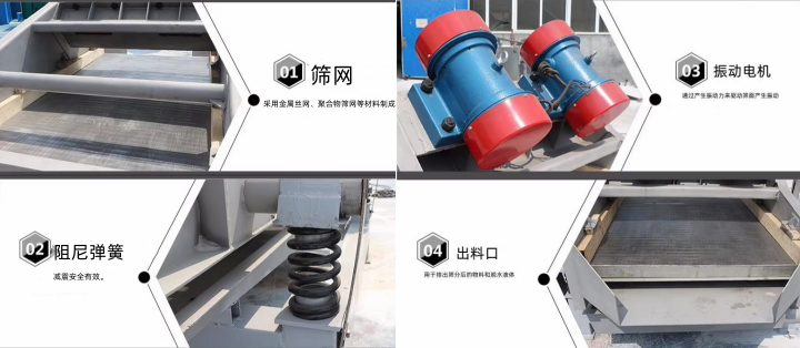 5、出料口:出料口位于篩箱底部,用于排出篩分后的物料和脫水液體。