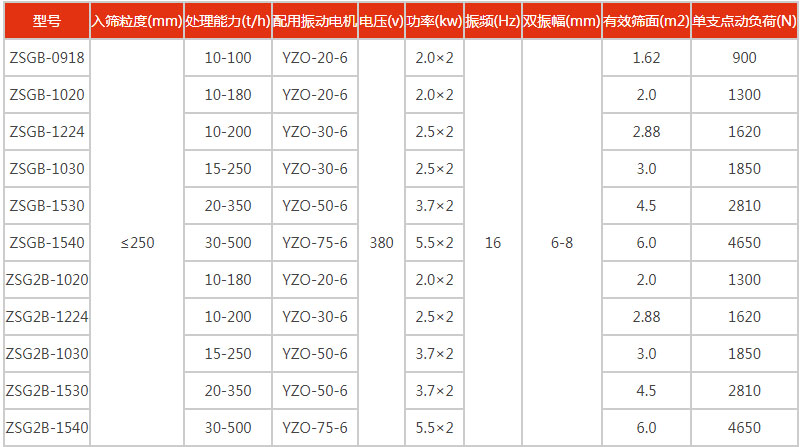 • ZSG礦用振動篩技術參數
